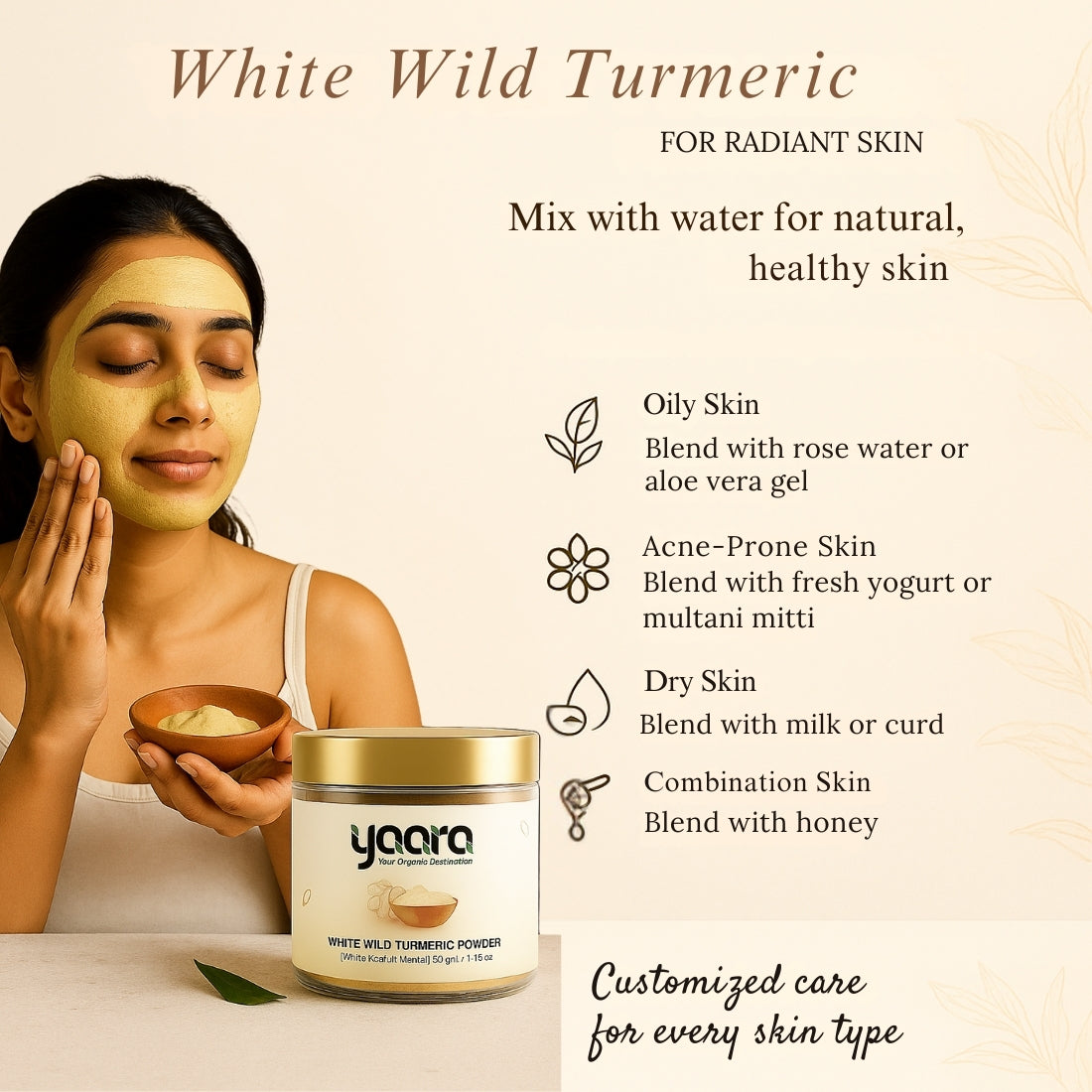 Discover the magic of yaara's organically growth, naturally processed, rarely found white wild turmeric (real curcuma aromatica). Our rare gem is a powerhouse of skin and health benefits, enhancing your wellbeing...