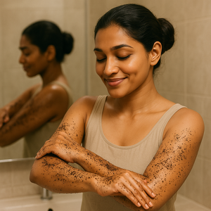 - 1 Take the required amount of yaara’s coffee rich body scrub