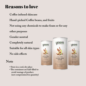 Yaara’s Coffee Face Scrub is made organically with freshly picked and roasted Coffee beans. Our Coffee face scrub will give you a tan-free, healthy, and clear skin with the goodness of the best organic exfoliators.