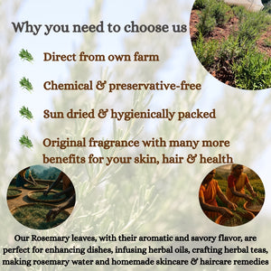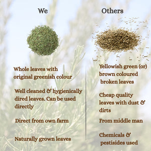 Introducing yaara's farm fresh rosemary leaves, straight from nature to your kitchen. This aromatic leaves are handpicked from our own farms of Nilgiris, ensuring the highest quality and freshness. Experience the difference of farm fresh rosemary leaves and elevate your cooking and body to new heights.