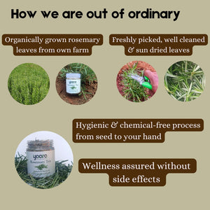 Elevate your daily routine with Yaara's farm fresh rosemary tea: packed with nature's goodness. This aromatic brew boosts your memory, eases stress, supports Kidney, Brain function, aids digestion,