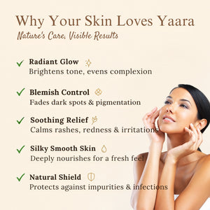 Yaara is a nature-inspired brand offering premium skincare, haircare, and herbal tea products made from 100% natural ingredients directly sourced from trusted farms. We don’t use any harmful chemicals, synthetic fragrances, or artificial preservatives.