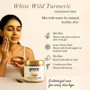 Discover the magic of yaara's organically growth, naturally processed, rarely found white wild turmeric (real curcuma aromatica). Our rare gem is a powerhouse of skin and health benefits, enhancing your wellbeing...